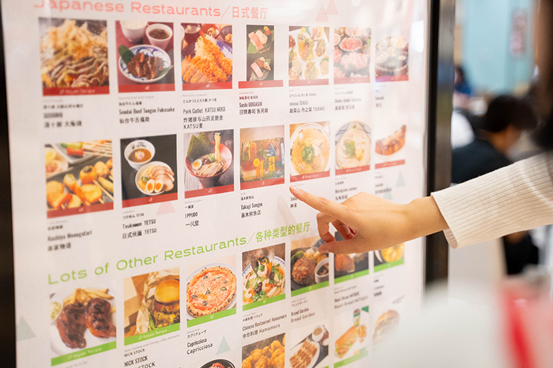 ランチタイムはフードコートがとってもにぎやか…「席が見つからない!」なんてことも。
